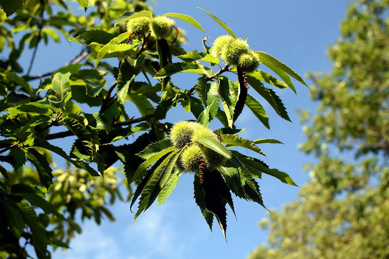 Chestnuts are also magnificent trees, growing tall and straight; their wood is remarkably resistant to decay, making it ideal for framing, log cabin foundations and fences.